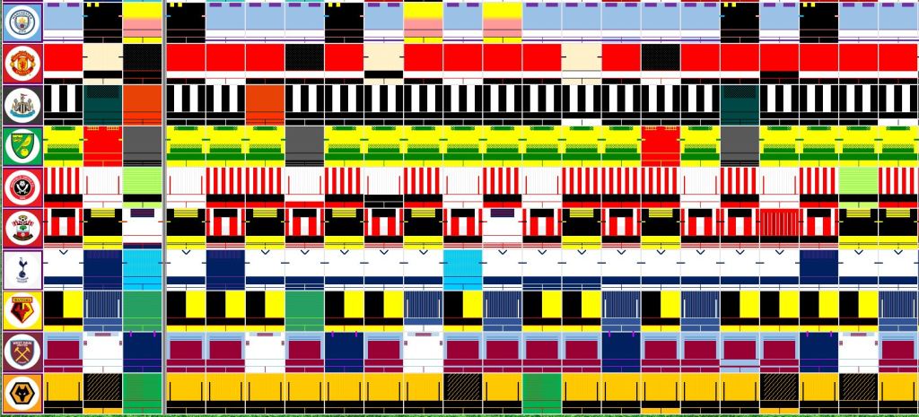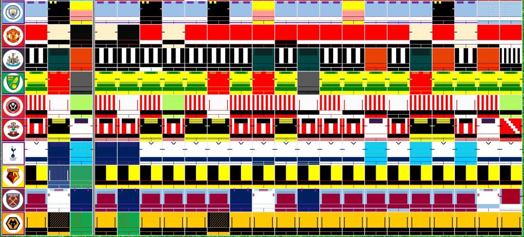 Below is a graphic of what kits where worn against what teams, its one that I share on a weekly basis on my Twitter Account – https://twitter.com/kit_geek