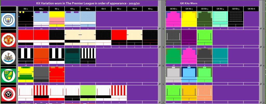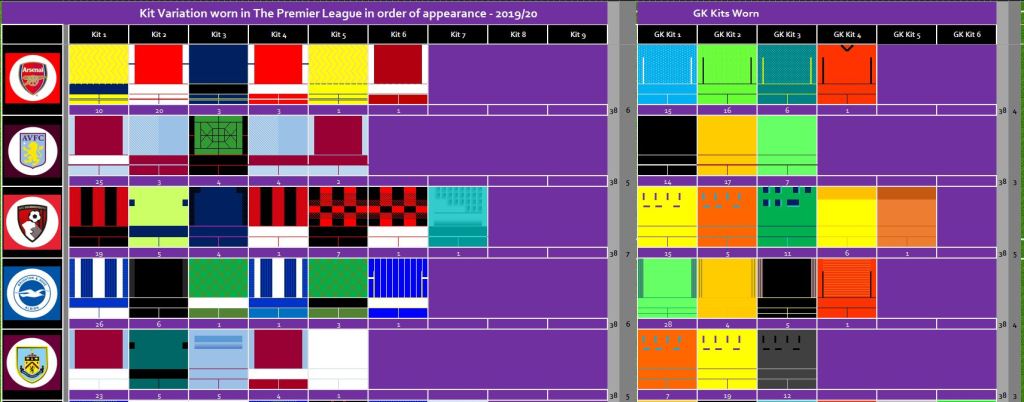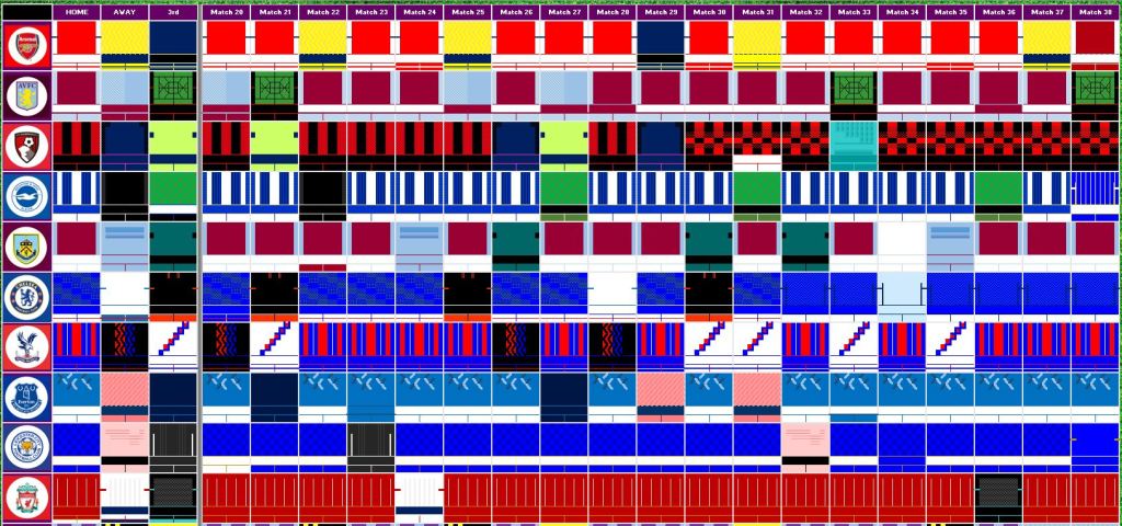 - Three teams used a 4th Kit (Burnley, Everton, Southampton)