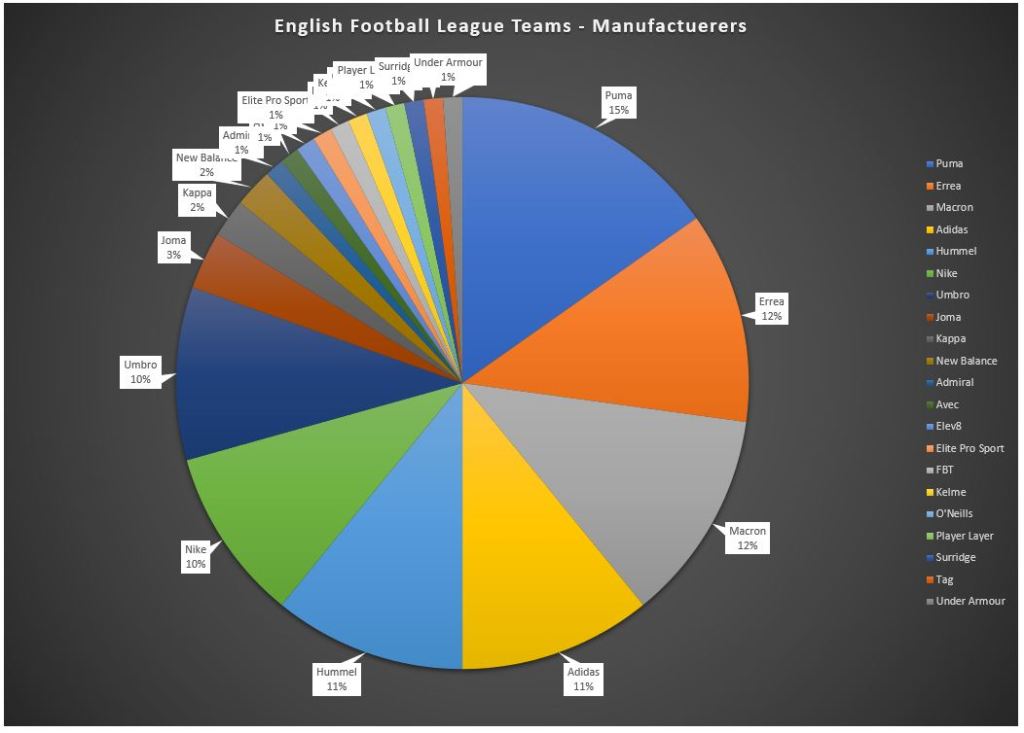 The 2020/21 Season is now in full swing, I thought it was time to document the kits worn by the 92 English League Clubs and look at the manufacturers used.