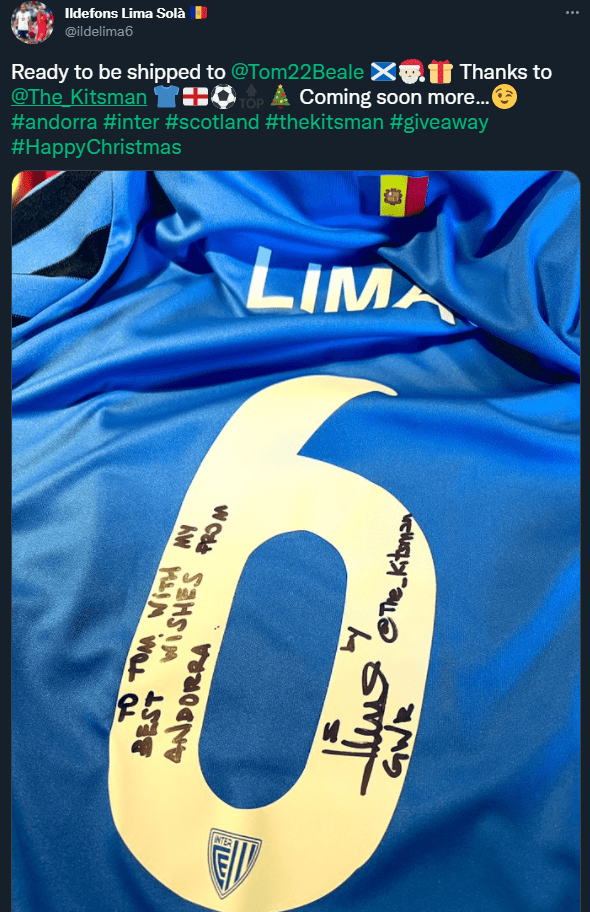 Andorra’s Ildefons Lima Solà gave away one of Match Worn shirts as part of a Christmas giveaway and added a nice touch by signing the number