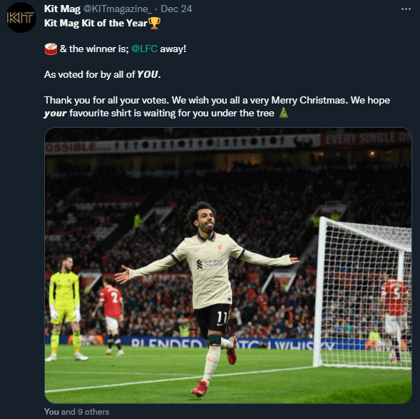 The guys over at Kit Mag ran a knock competition to find their follower’s Kit of 2021, the winner was the Liverpool Away kit beating Venezia away in the final with 64% of the vote.