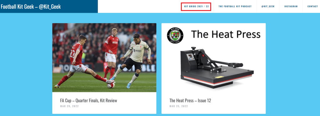 There has been a few updates to my site over the past week, I have now included a section where I will keep the Kit Grids from the 2021 / 22 season in one place, the Premier League has been added with EFL Leagues to be added over the coming days (example below, Premier League up to 5th April 2022).