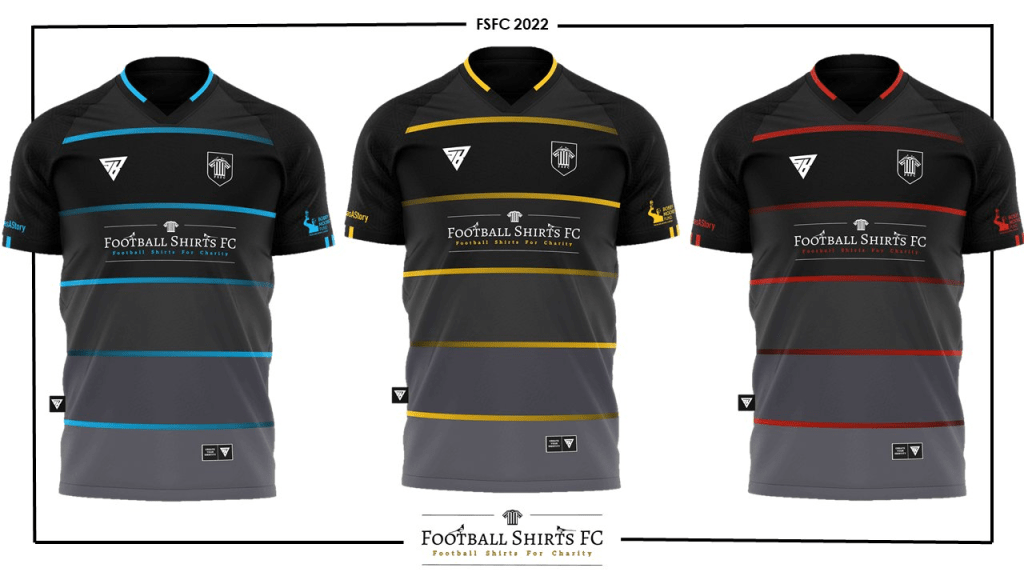 Firstly our Friends at Football Shirts for Charity have released some new Charity shirts for 2022, following up from their wonderful shirts from 2021, they are producing three shirts each with a different colour details and you can include a name and number for no additional charge.