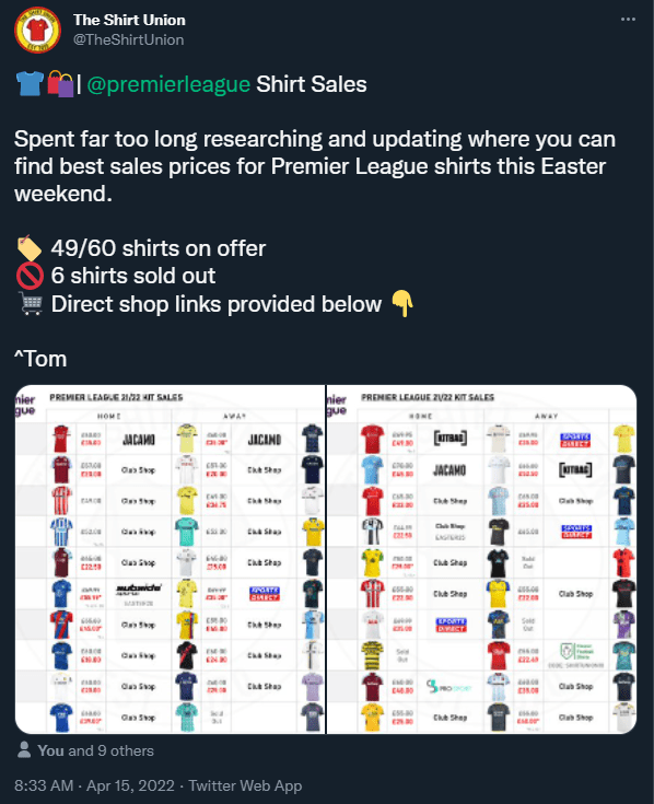 It’s that time of year again where the duo behind The Shirt Union start pulling together where the best deals to get this season shirts, make sure you follow them for more updates to get that deal before the end of the season.