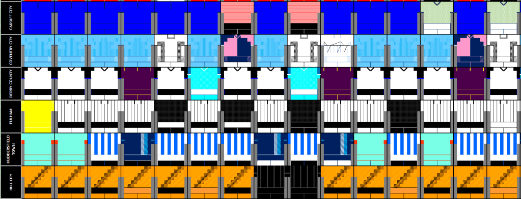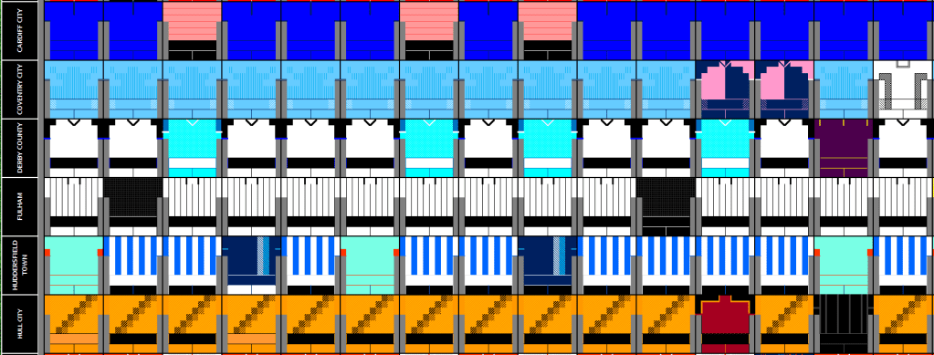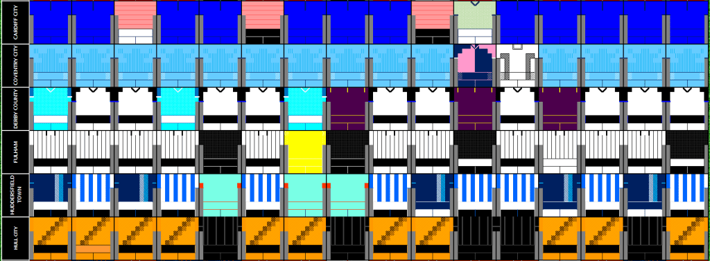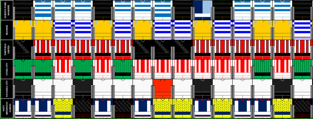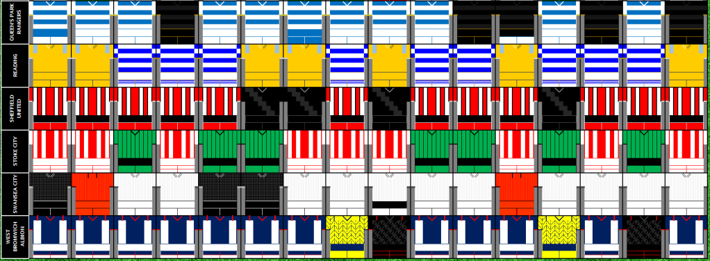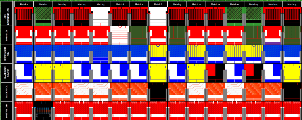 Below is a graphic of what kits where worn against what teams, its one that I share on a weekly basis on my Twitter Account – @Kit_Geek