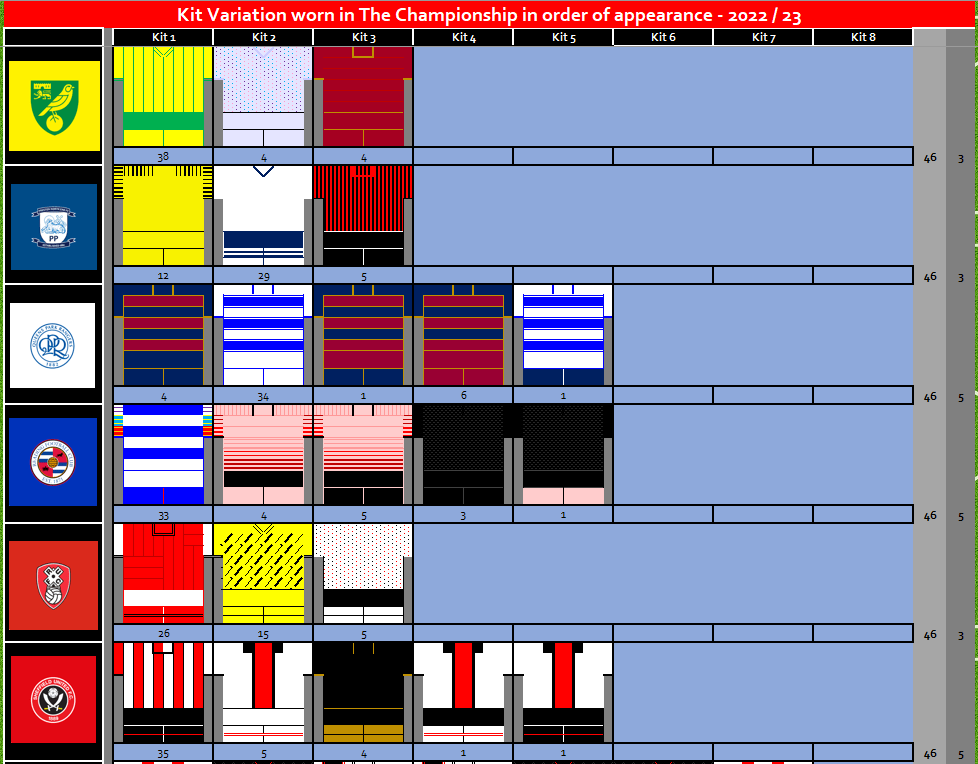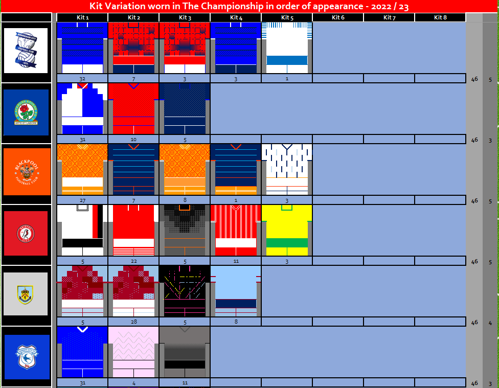 - 1 Team wore 8 Kit Variations, most in The Championship