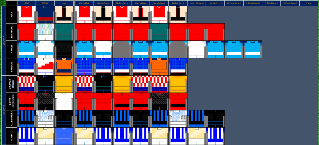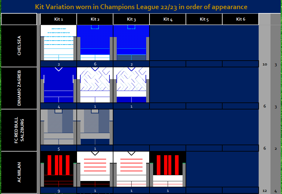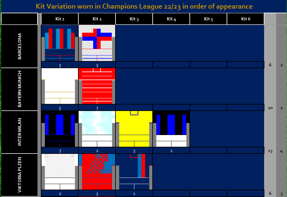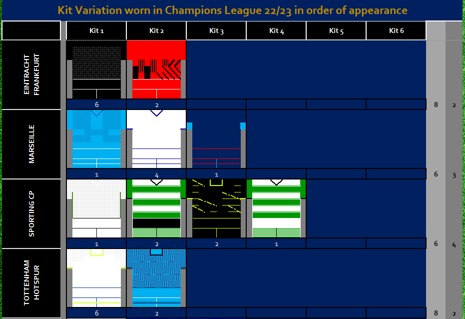 Looking in more detail at the Kit Variations worn by the Champions League Teams