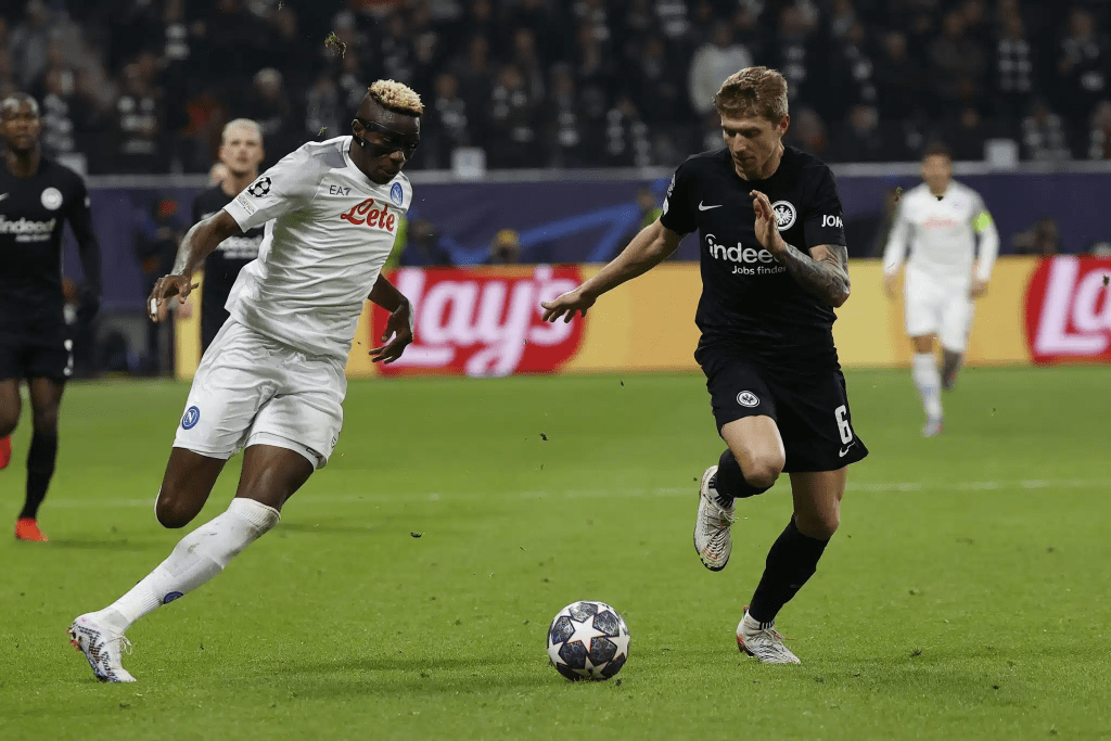 Napoli in Away kit with home shorts to give an all white look against Eintracht Frankfurt in the Last 16 game