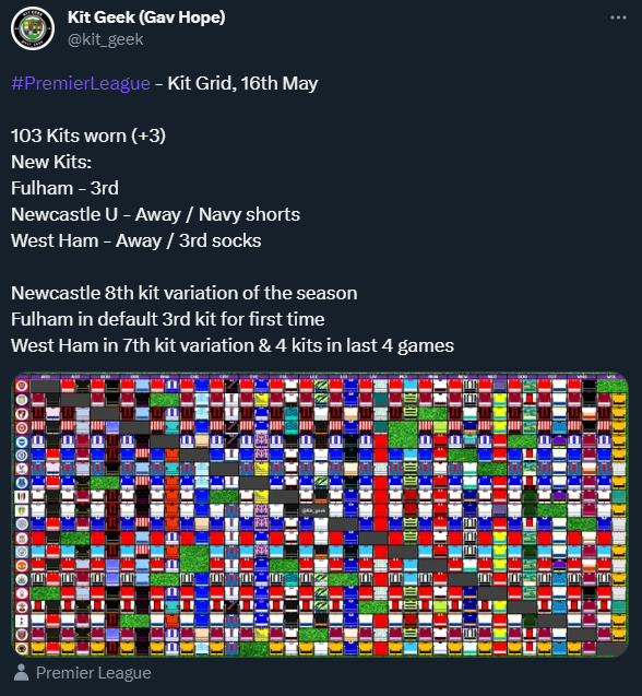 As regular “Twitter / 𝕏” Followers will know I share updates after Premier League Matchweeks with Kit Updates and my Kit Grid, showing what kits were worn in those games.