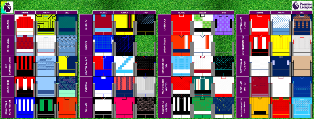 The current Kit Overview for Premier League is below, we now have 58 out of the 60 Kits released so far… just 2 to go…Chelsea and Luton Town 3rd Kits.