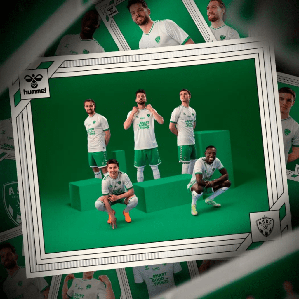 Another low key version for French Ligue 2 side St.Etienne, with a predominantly white shirt with a very pale green strip used within the shirt for their away kit, green being the club colours being used here gives a great alternative kit for the team to use on the road.