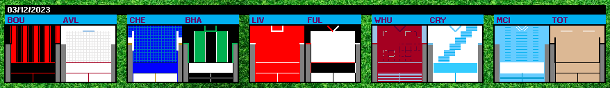 There was one new Goalkeeper Kit on show, which was Crystal Palace who used their 3rd different Goalkeeper Kit with an Orange alternative kit.