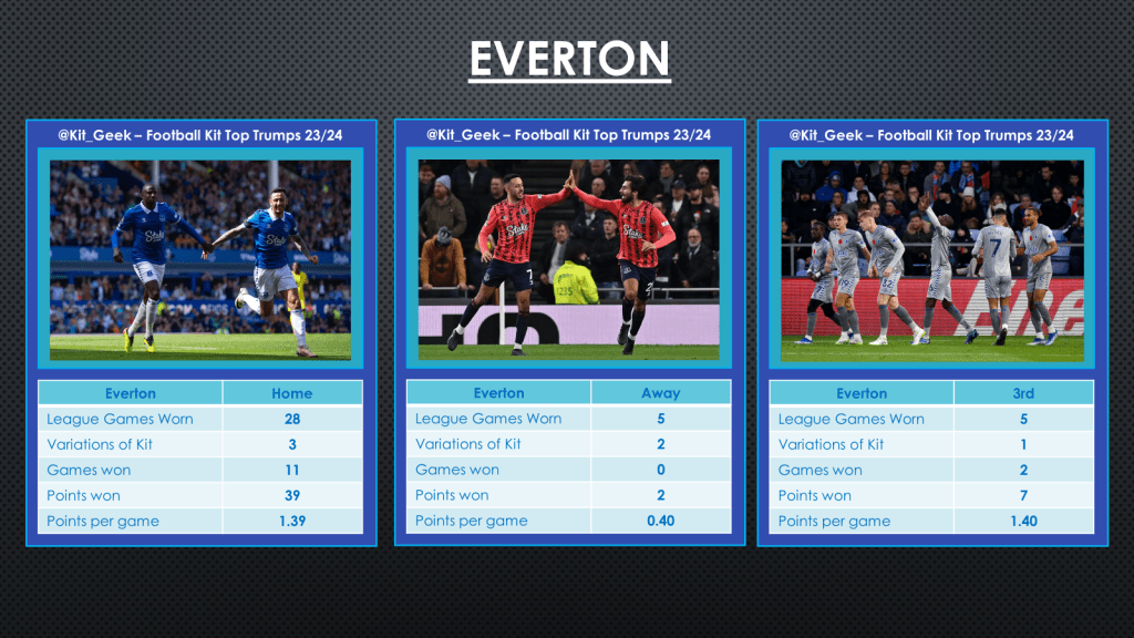 I like to look at Football Kits and Kit Stats in many ways, one way that I wanted to revisist for the previous seasons was a Top Trump format.