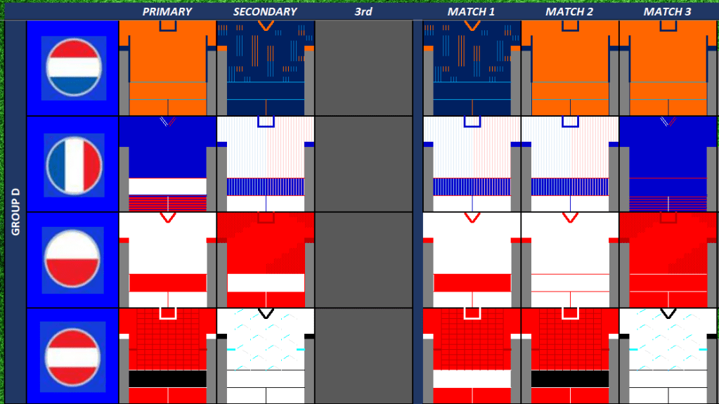 - Poland / Austria in 3 different kits in their 3 games