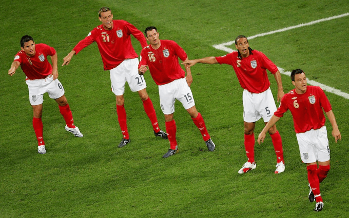At the Euro 2000, England failed to make it past the group stages and wore their Home Kit in the defeats to Portugal and Romania, however their solitary victory in the tournament against Germany gave us the rare sight of these countries both playing in their Secondary Kits!