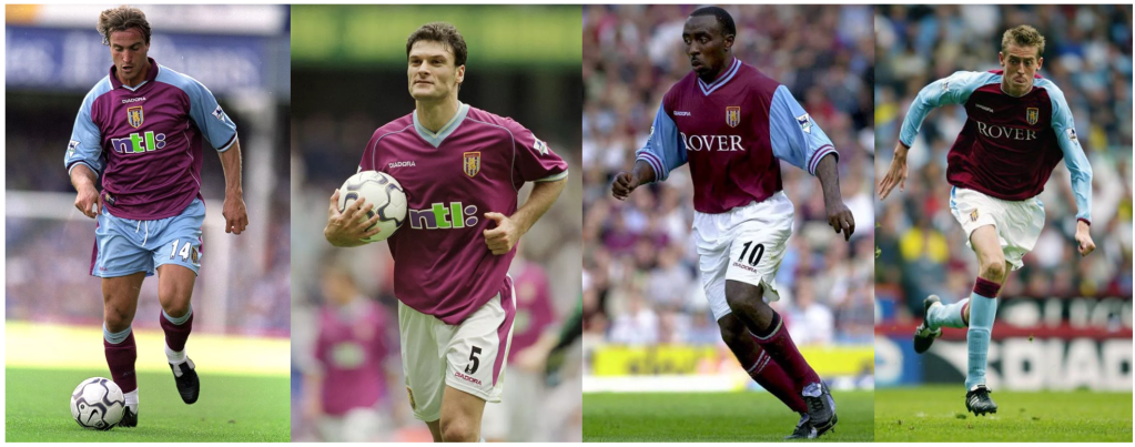 1999 was a season where there was another significant change in kit design with thick stripes being used in the shirt, paired with claret shorts and socks. There was also a move of the Club Crest and logo to be central in the shirt, the first time the crest had been placed there since 1983. A Kit look which is one of my favourite looks, but not sure is one for the traditionalists.