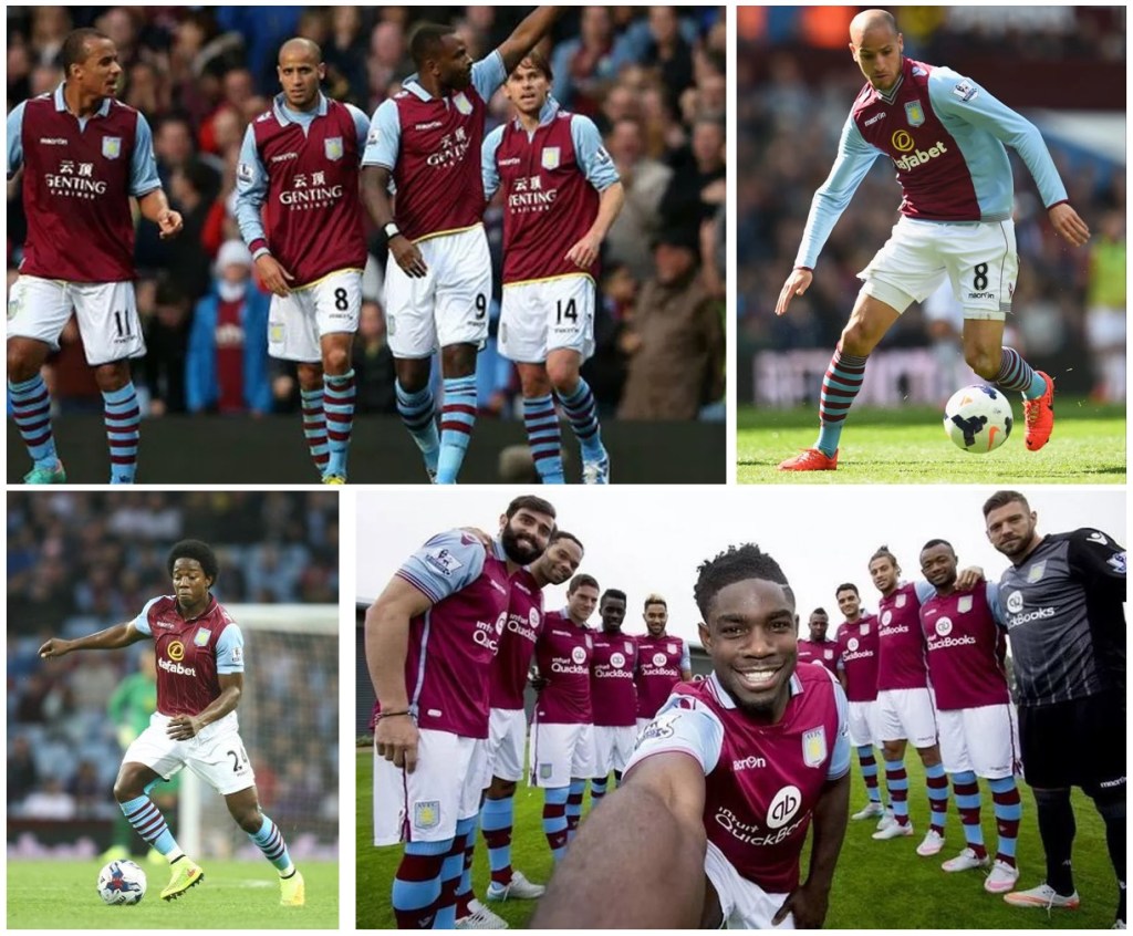 Italian Kit manufacturer Macron were the next provide of Aston Villa kits, this deal was over four season and as is now the norm, there was a new Home Kit in every one of these seasons. In the main there was very little change over these years, the most significant design choice was the return of the “Ajax” style shirt in 2013 / 14, this would have been the first time this look was used since the Le Coq Sportif period 30 years prior. In 2014 / 15 season, there was a blue pinstripe within shirt for something different. One highlight of the Macron years was the use of hooped socks, each of the four kits using this look and something not seen since 1998 with one of the Reebok kits.