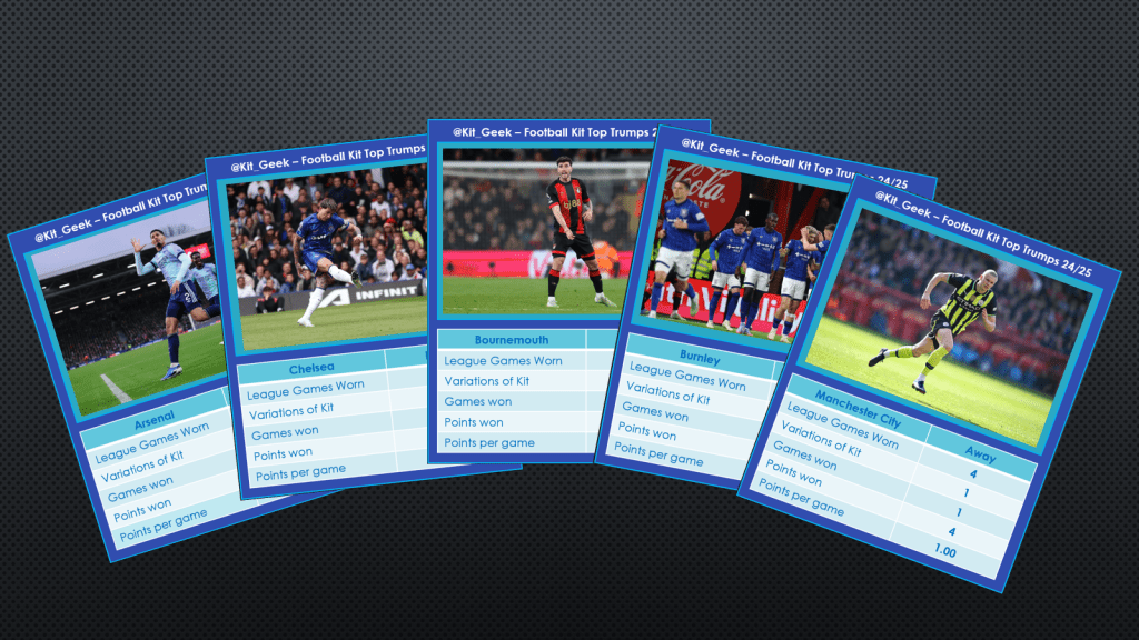 I like to look at Football Kits and Kit Stats in many ways, one way that always seems popular is the “Top Trump” format.