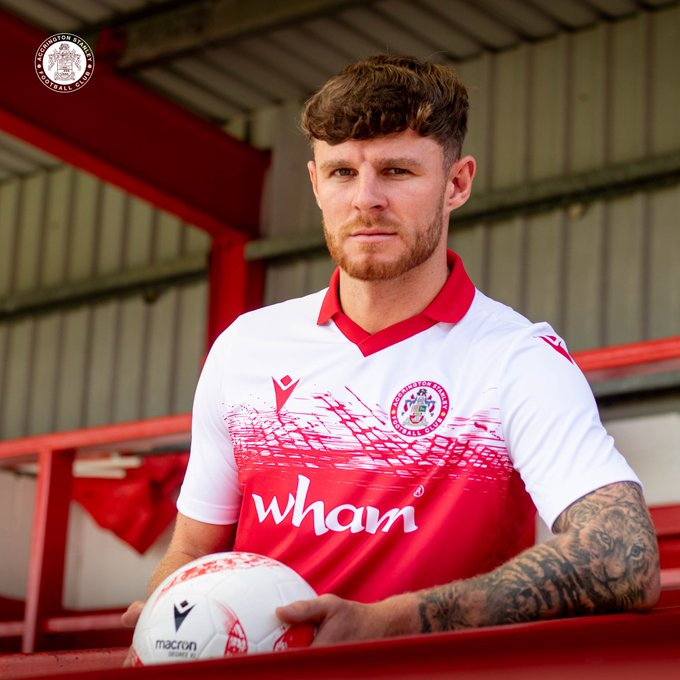 Accrington Stanley, Home: Accrington going for a new look this season with this Home Kit, the shirt has a white chest and sleeves with details in red that then continue throughout the rest of the kit.