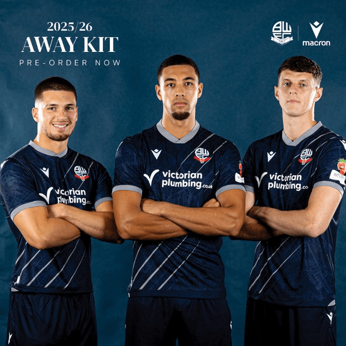 Bolton Wanderers, Away: This all navy kit is a nice alternative to the Home Kit, and looks back to the club’s first European campaign 20 years ago.