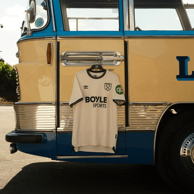 West Ham United, Away: Ecru is back for West Ham, with another Away Kit taking a nod from the past, this one is based on 1996 / 97 Away Kit and has claret trim to maintain that West Ham look!