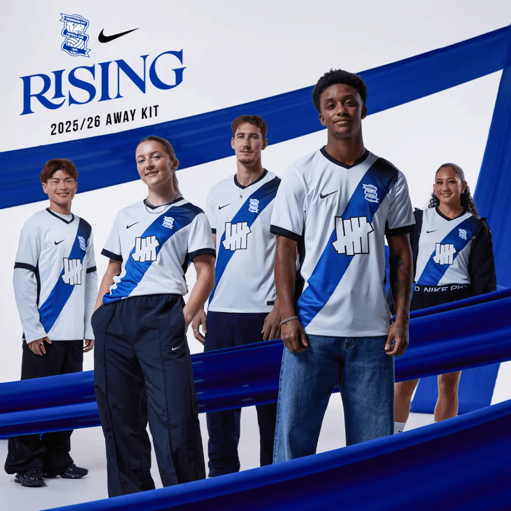Birmingham City, Away: As part of the club’s 150th Anniversary they have looked to their first kit for basis of the Away kit with the sash being part of this shirt, which transitions from black to blue.