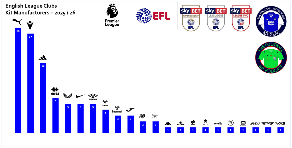 A reminder you can find details of the 9 Different Kit Manufacturers used in the Premier League this season (along with the rest of The EFL Clubs) – here