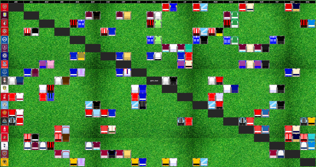 There were four Kit variations used in this Matchweek, three of which were Away Kits.