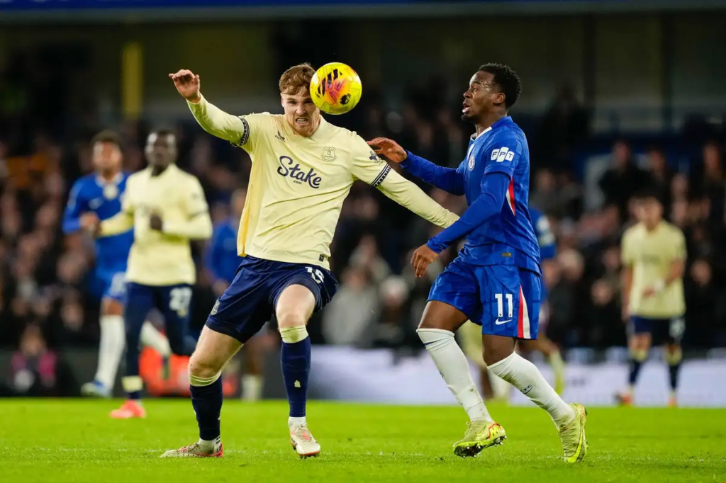 Everton wore their Away Kit with alternative navy socks at Chelsea, this was the first time this look has been used this season.