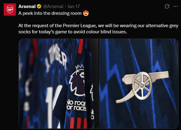 Interestingly they shared on their Social Media the reason for the change of socks, with Premier League making the request due to impacts of colour blind supporters.