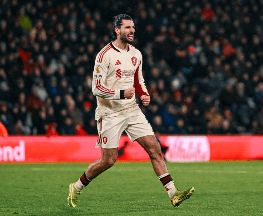 Liverpool wore their Away Kit with alternative “Ecru” shorts