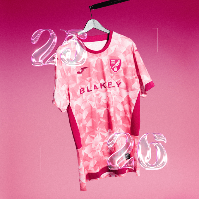 Norwich City, 3rd: Its a vibrant pink kaleidoscope effect shirt for Norwich City’s 3rd kit this season, paired with darker pink shorts and socks for a new balanced looking kit overall.