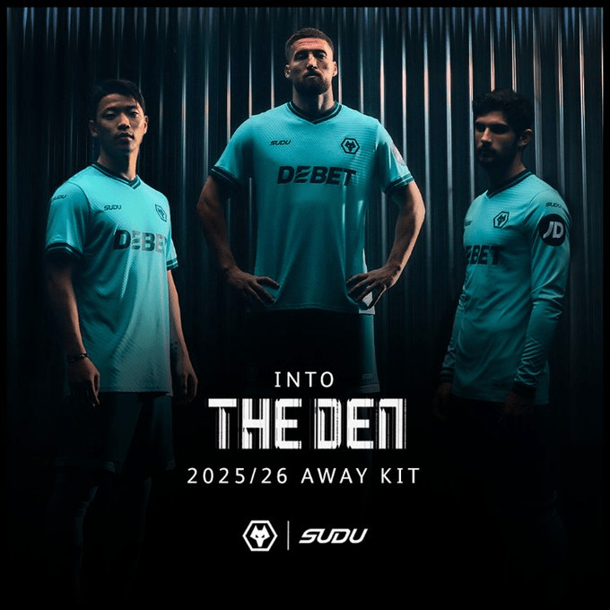 Wolverhampton Wanderers, Away: A turquiose Away kit for Wolves this season, not dis-similar to their goalkeeper kit last season, this shirt does contain a subtle Wolves head pattern within its details.