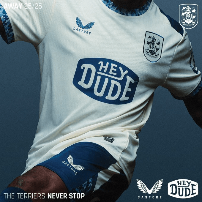 Huddersfield Town, Away: Huddersfield complete their first Castore Kit Set with this Ecru shirt, some nice detailing in the collar and cuffs, which contains a nice shade of blue.