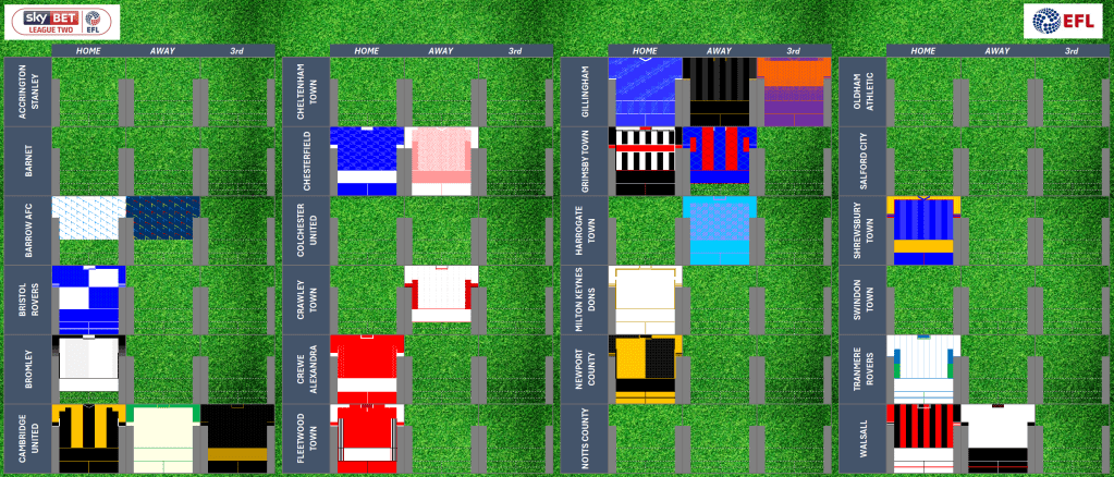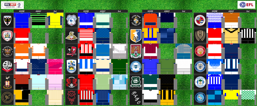 You will also find my Kit Overview illustrations for each of the four divisions which will used to document the Kit Usage of all 92 English Clubs.