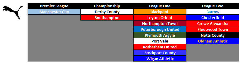 Blackpool, Away: Blackpool’s Away is the reverse colours of their Home, as we have seen over the past few seasons this will open up mash up opportunities for both Home and Away kits!