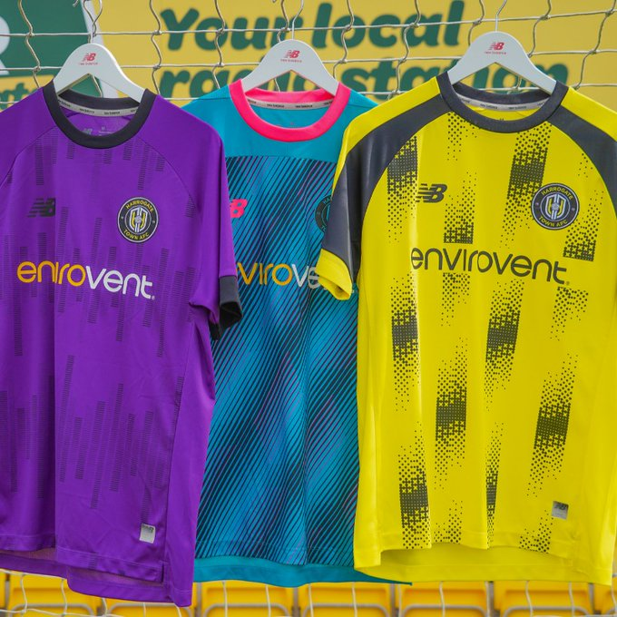 Oldham Athletic, Home / Away / 3rd: Oldham Athletic were the final team to secure their place in League Two this season, returning to EFL after an absence of three season. They have released all three of their kits in one hit, with the Home an “Ajax” Style looking kit, Away is Red with a nice checked pattern and final 3rd is a gray shirt with orange “stitch” pattern included.