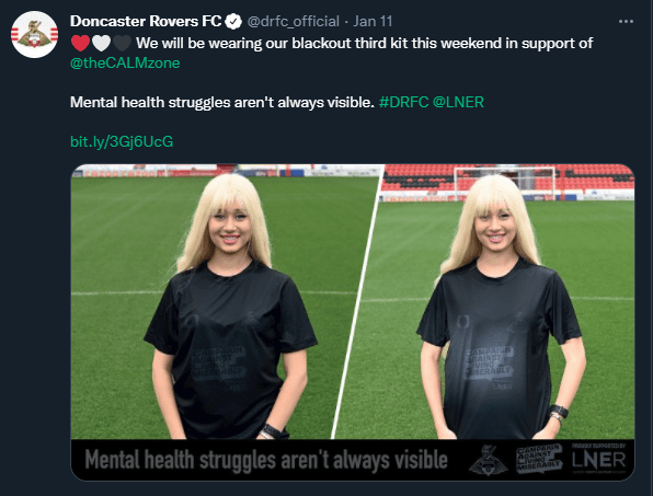 On Saturday 15th January, Doncaster Rovers wore a “Special” Kit, their all black look was choosen to promote Mental Health Struggles and show that they are not always visble.