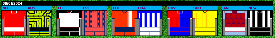 The most kit variations used by a single team with 13 Kits in total but only 3 of these were worn more than once… Home Kit (Default Look) 23 times, Away with Home Shorts (All White) 3 times and Home with alternative claret shorts / socks was worn twice.