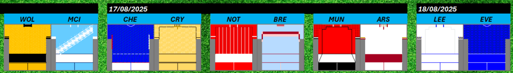 My favourite Kit Match Up of this Matchweek was the game between Brentford and Fulham, two nice kits on show, likely the last time we will see this Brentford Home Kit which has been in use for two seasons and Fulham in 3rd Kit with Home socks, for a nice match up!