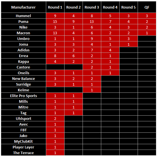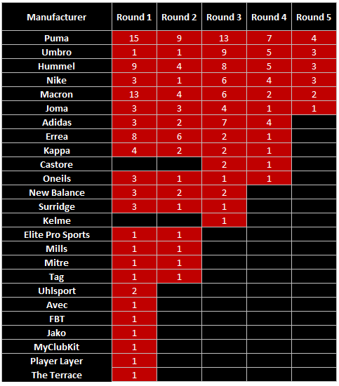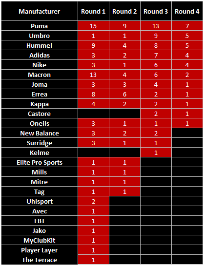 I am taking this opportunity to look back at this season’s competition and the Kits worn by the teams from the First Round.