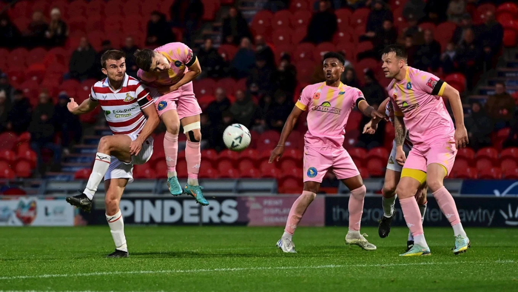 I do have a soft spot for Red / Black Kits (I think its a love of AC Milan from the 80s / 90s), so Kettering Town’s Home Kit was great to see in action, and matched up with Doncaster Rover’s Away kit gave us a nice looking Kit Match up!