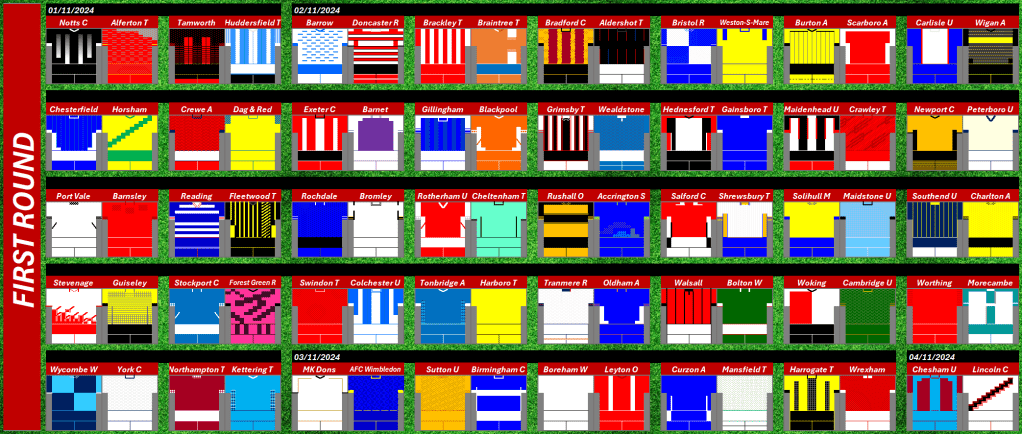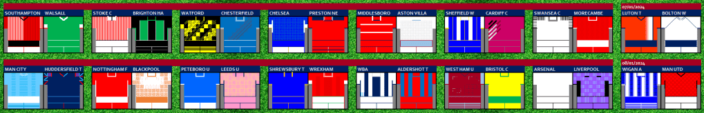 Tamworth and Huddersfield Town provided an interesting Kit Match up, with a lot going on with both kits, my favourite match up of this round.