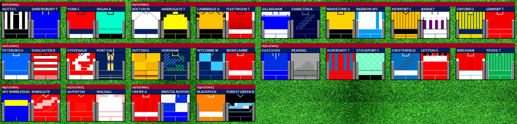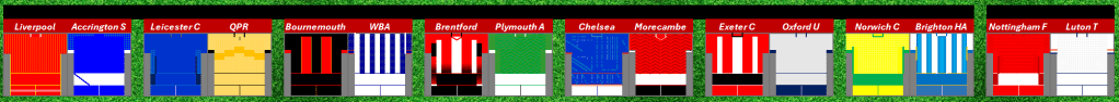 One of my favourite kit usages is when a team wears a “Tri-colour” kit, with all elements of the Kit being in different colours, so Manchester City against Plymouth Argyle produced a wonderful Kit Match up with both teams in “Tri-Colour” Kits.