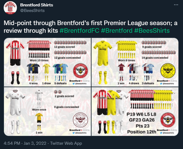 There are some great kit logs out there this season, @ArsenalShirt and @VictoriaGooner are logging Arsenal’s kits this season, @BeesShirts for Brentford and @BatisCreativo for Atletico Madrid are some of my favourites.
