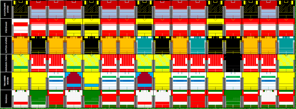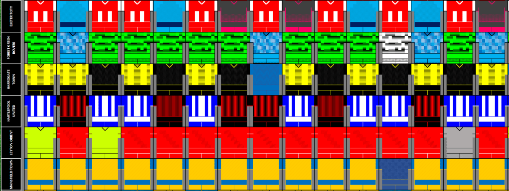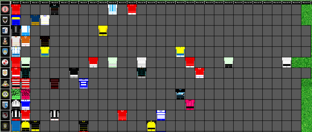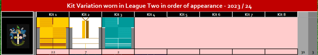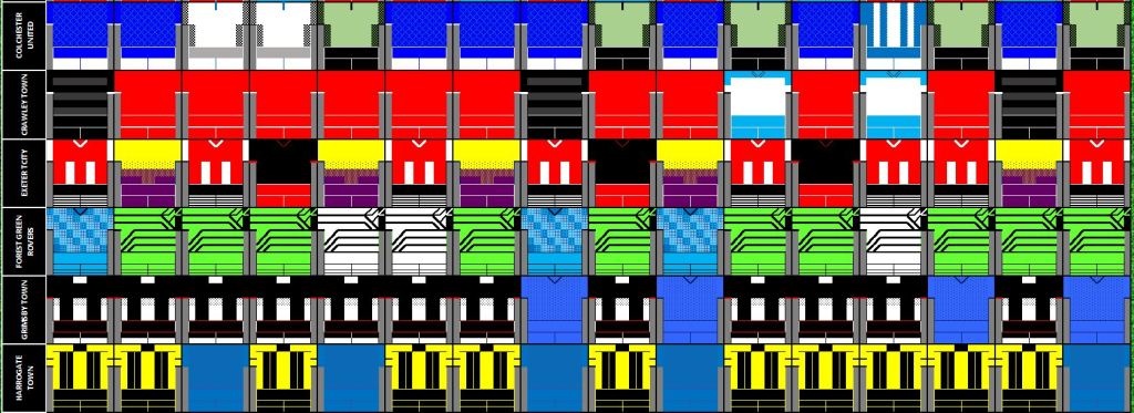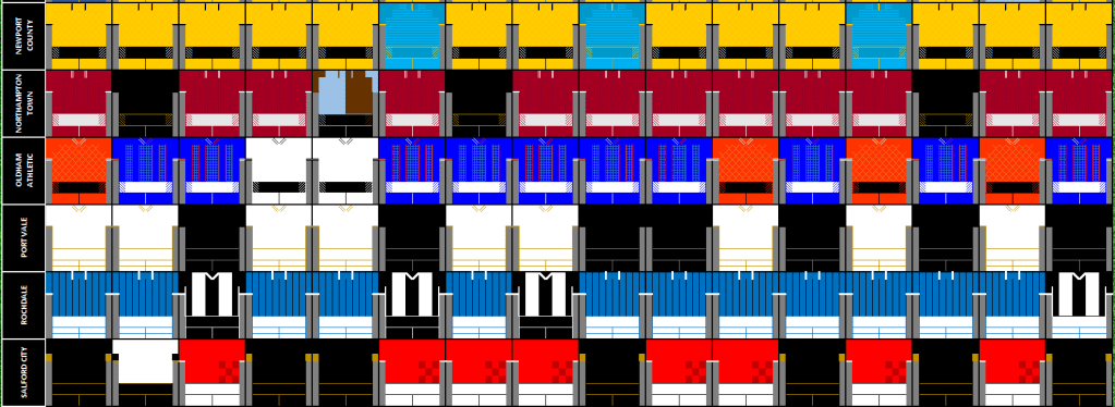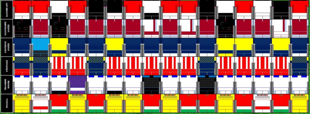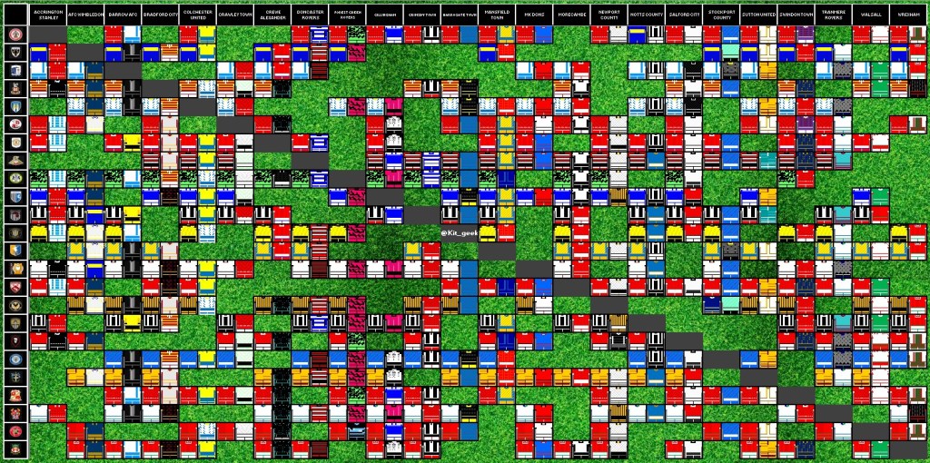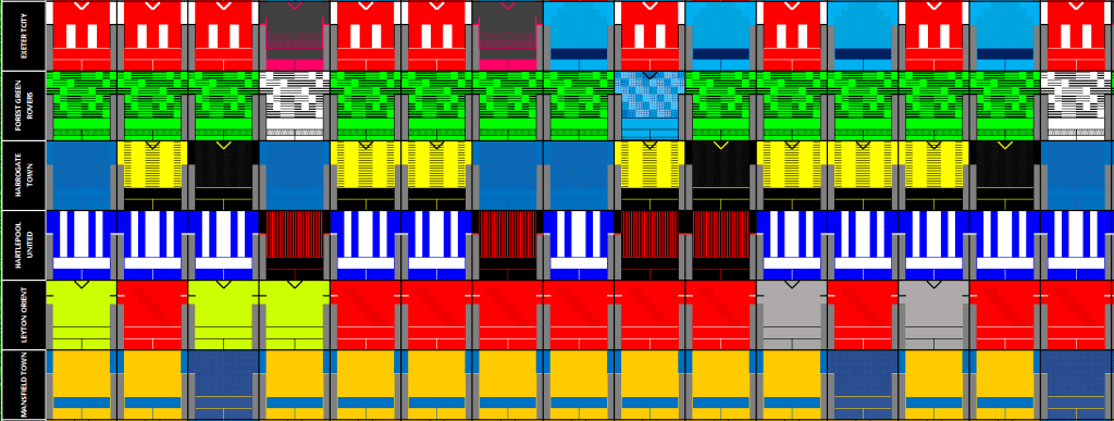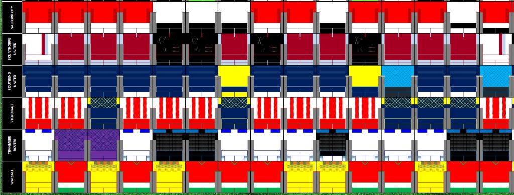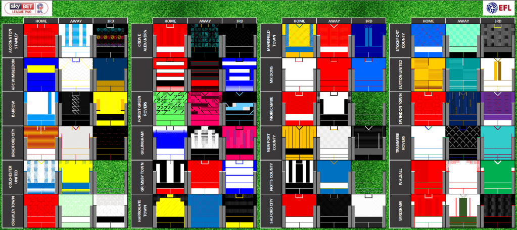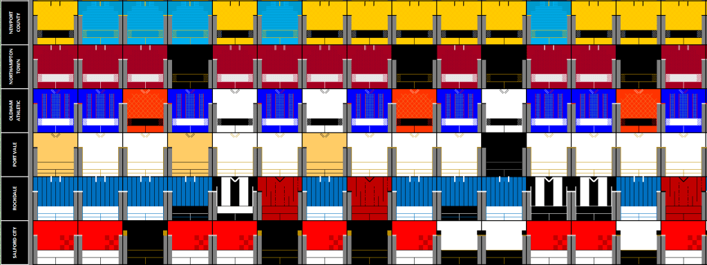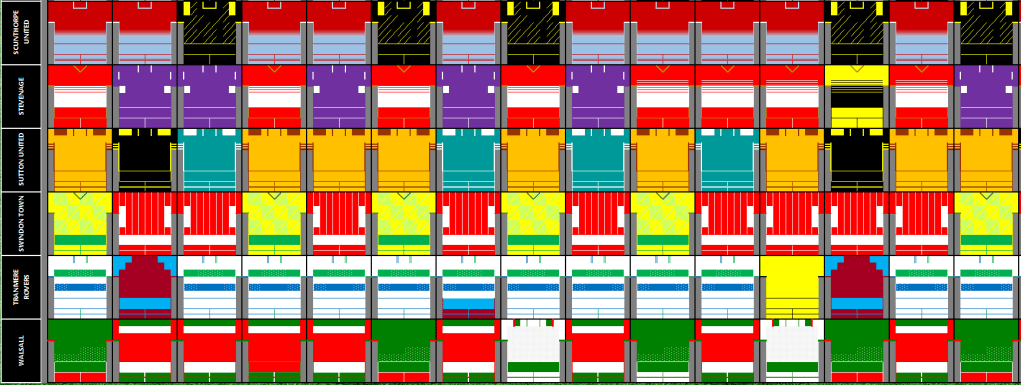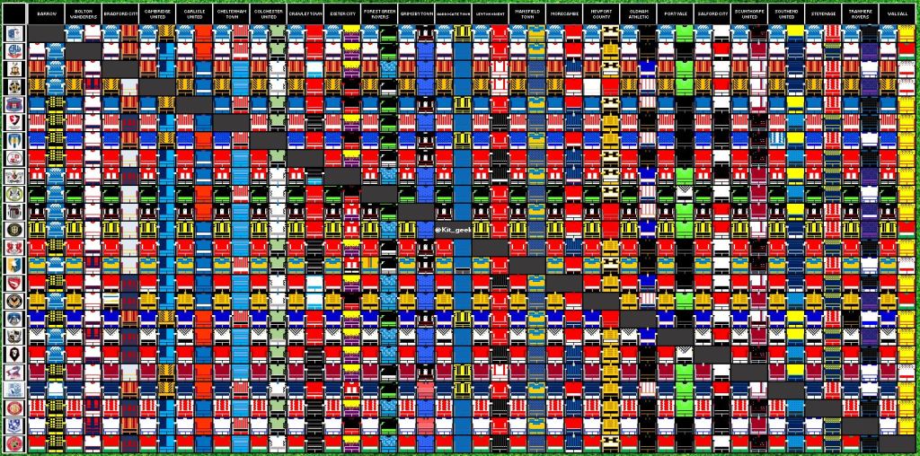 Northampton Town, 3rd Kit: Its the 3rd Kit first up for Northampton Town and another almost metallic futuristic look in League One, with aqua green, gray kit and detailed with neon yellow… a nice look, that works well for me.