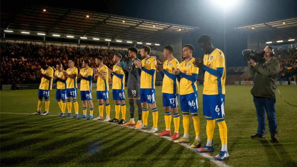 Cambridge United, 3rd: The full kit set is completed for Cambridge, with this black kit which is paired with gold shorts and black socks, a nice balance from Home Kit.