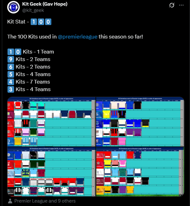 The 2024 / 25 Premier League season ended with total of 113 different kits used by the 20 teams, you can find details of all of those kits in my in depth End of Season Kit Review, however of those 113 kits there was 33 kit looks that only got one appearance, these are our “One Kit Wonders”!