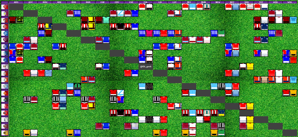 - Kits Worn in Total – 95 (+1 from Matchweek 22)