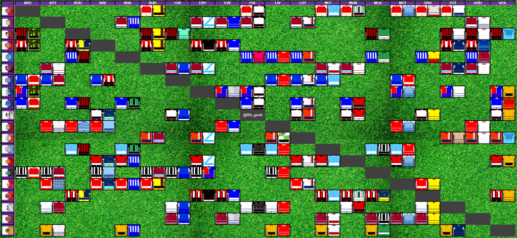 The current Kit Overview for Premier League is below, we now have all 60 shirts released… still waiting for confirmation of the shorts that will be used with Luton Town’s 3rd.